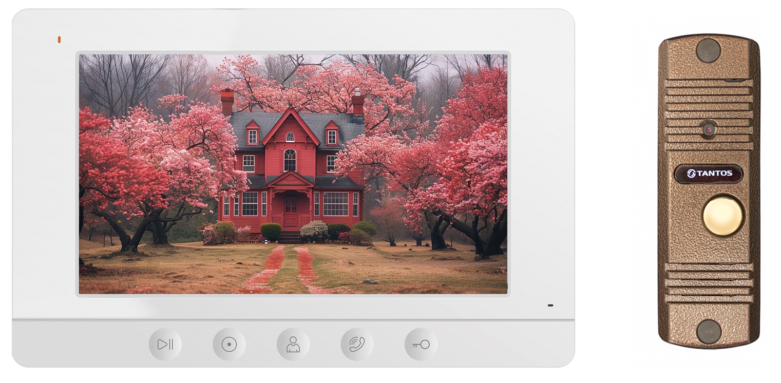 Комплект HD домофона: монитор и вызывная панель Corban HD (медь). Монитор: цветной, с поддержкой форматов AHD/TVI/CVI1080р/720p или CVBS(PAL) и отправкой уведомлений о вызове на смартфон через приложение "vhOme 2.2". Экран 7 дюймов, разрешение 800х480, управление сенсорными кнопками, handsfree. Встроенная память на 100 фото. Питание 15В (блок питания 15/220В в комплекте). Габариты: 203 х 130 х 16 мм (без настенного кронштейна). Вызывная панель антивандальная, накладная, формат AHD 1080p, угол обзора 70 град., -40С...+50С, четырех проводная схема подключения.