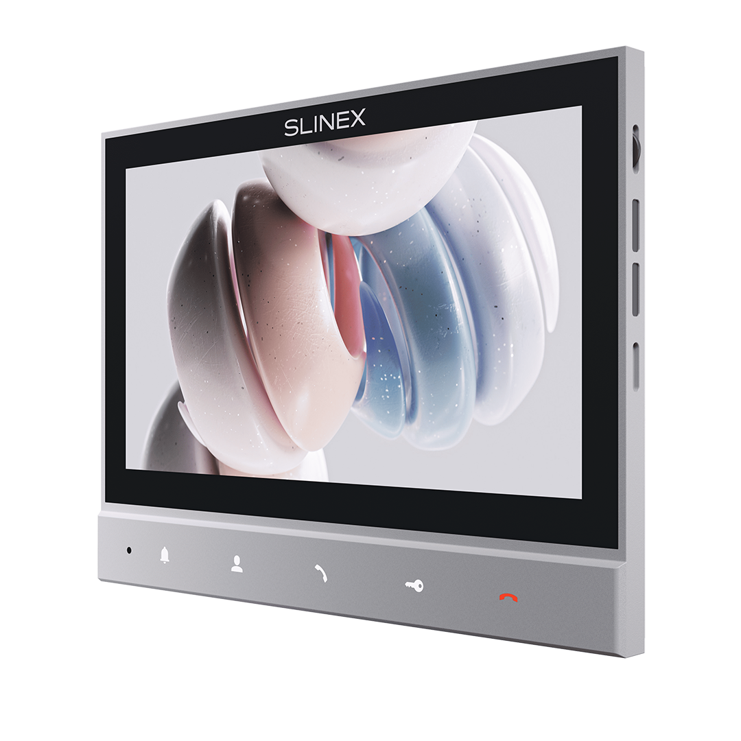 Цветной настенный видеомонитор с 7″ TFT LCD экраном формата 16:9, разрешение 1024×600. Сенсорные клавиши с подсветкой, встроенный блок питания. Форматы – AHD/CVBS/TVI/CVI. Память – нет. Поддержка 1-й вызывной панели, 1-й видеокамеры. Питание: ~100–240 В или +13,5 В, потребление до 6 Вт. Размеры: 176×129×23 мм.