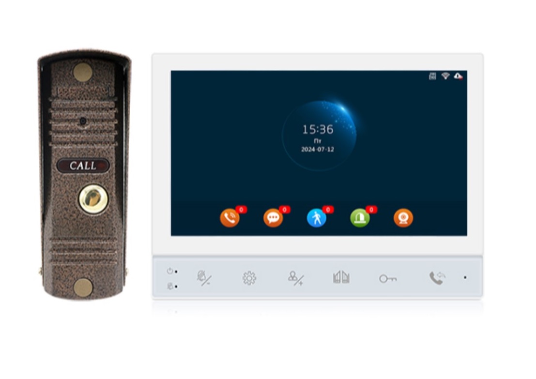 Комплект: видеодомофон FHD с Wifi  и видеопанель FHD .                                                                                                                                   Цветной домофон (AT-I-M741F/TW White) FHD с TFT экраном (1024x600) 7 дюймов. Детектор движения, запись и сенсорные кнопки управления. Подключение 2 вызывных панелей 1080P AHD/TVI/CVI или CVBS, 2 видеокамер 1080P AHD/TVI/CVI или CVBS , 2 датчиков тревоги, адресный интерком. Разговор по громкой связи. Соединение с вызывной панелью 4-проводное. Слот microSD до 128 Гб, питание ~100-240В или DC12В.   Приложение Smart Life.                                                       Цветная накладная видеопанель (AT-I-D01F (V2) Brown) коричневого цвета с FHD (1920x1080) матрицей. Угол обзора 120°. Подключение всех типов электрозамков (NO/NC). Рабочая температура -40..+50°С. Питание от домофона DC12В. Защита: IP65.