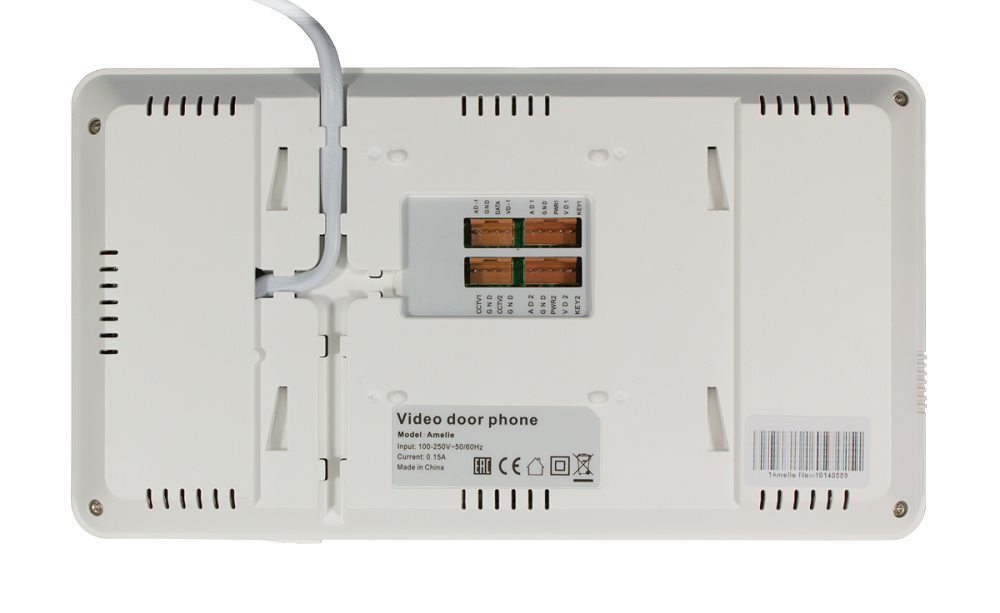 Монитор видеодомофона цветной (белый) с 7" дисплеем (управление сенсорными кнопками, Hands-Free)