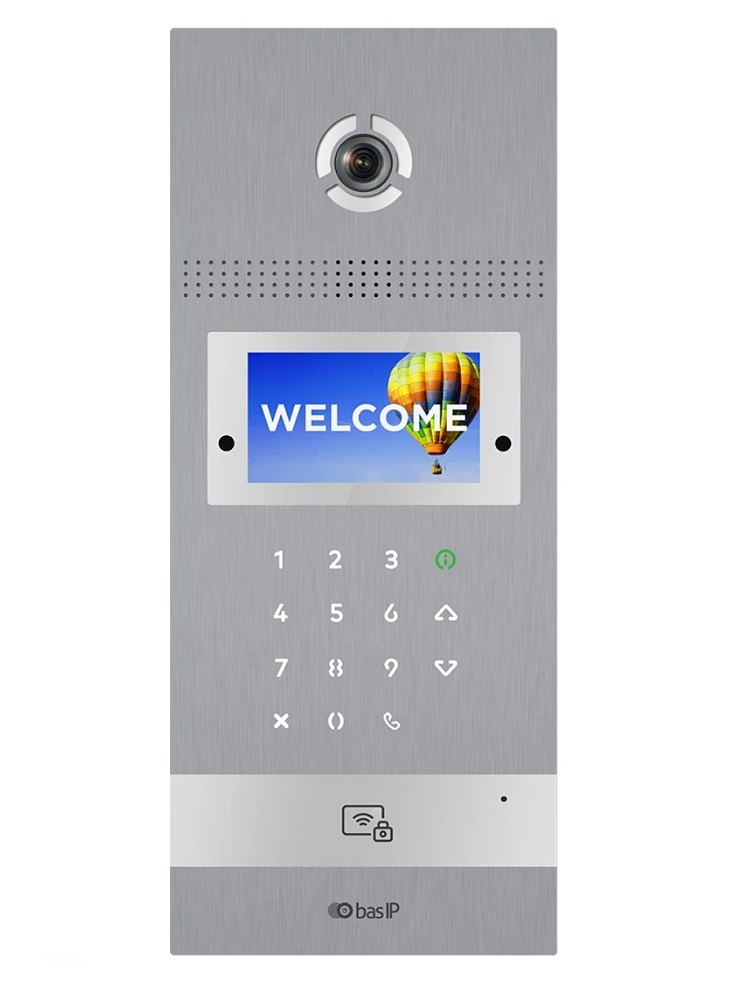 Вызывная видеопанель многоабонентская. Цифровая IP камера: 2.0 Мп.  Угол обзора 110° (по горизонтали). 4,3“ TFT цветной экран с подсветкой. Встроенное реле. Встроенный считыватель PW-OEM MF BLE v2 (Mifare SL1-SL3, NFC, BLE). 3D идентификация по распознаванию лиц — 10 000 лиц. Количество идентификаторов в памяти панели 20 000. Степень защиты: IP65. Температурный режим: -40 до +65 °C. Врезной монтаж. Накладной монтаж - опционально (кронштейн BR-AA12). Питание: +12В, POE+ IEEE 802.3at. Поддержка SIP P2P, Выход Wiegand 26, 32, 34, 37, 40, 42, 56, 58 бит, NFC, Bluetooth, RS485. Пьезоэлектрические кнопки. Размер: 380х158х49 мм. Гарантия - 2 года. Датчик приближения. Открытый API, поддержка ПО Link. Интерфейс для подключения индукционной петли для людей со слуховыми аппаратами.