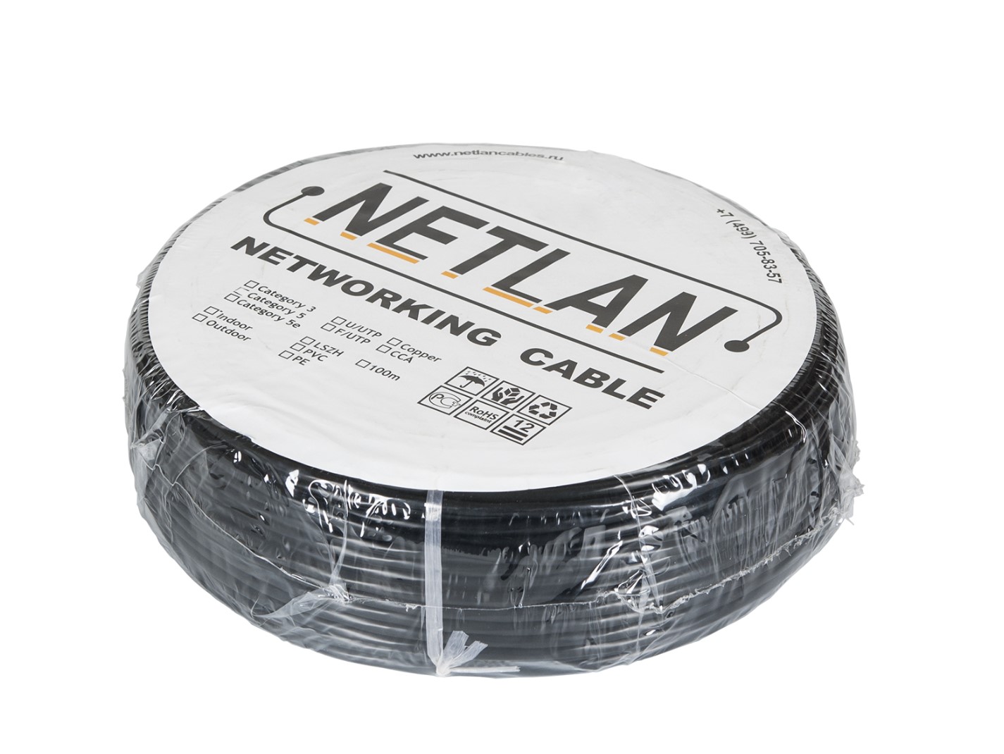 —Кабель NETLAN F/UTP 4 пары, Кат.5e (Класс D), 100МГц, одножильный, BC (чистая медь), внешний, PE до