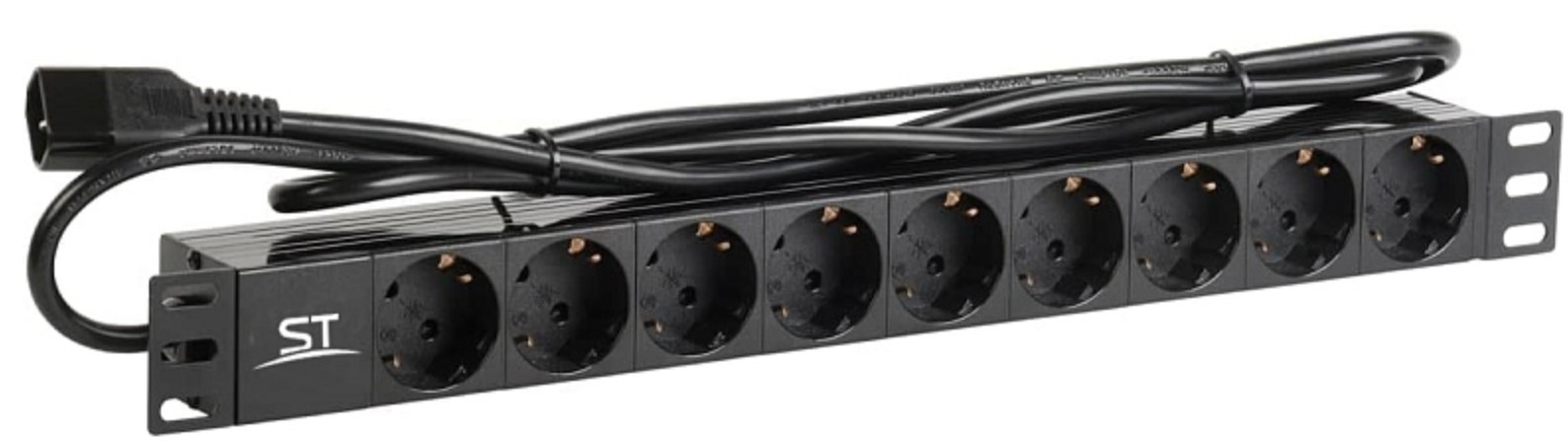 Блок розеток ST-PDU-01, Предназначен для распределения питания однофазных электрических приемников (потребителей) переменного тока напряжением до 250В и частотой 50Гц, Электрическое подключение: Соединительный кабель с вилкой, Тип разъема: IEC 320 C14, Длина кабеля: 2 м, Общ количество розеток: 9, Номинальное напряжение: 230 В, Максимальное напряжение: 250 В, 50 Гц, 16 А, 3500 Вт, Сечение жил провода: 1,5 мм², Защита: Нет, Количество розеток стандарта C2а: 9, Материал корпуса: Пластик, 0…+40°С.