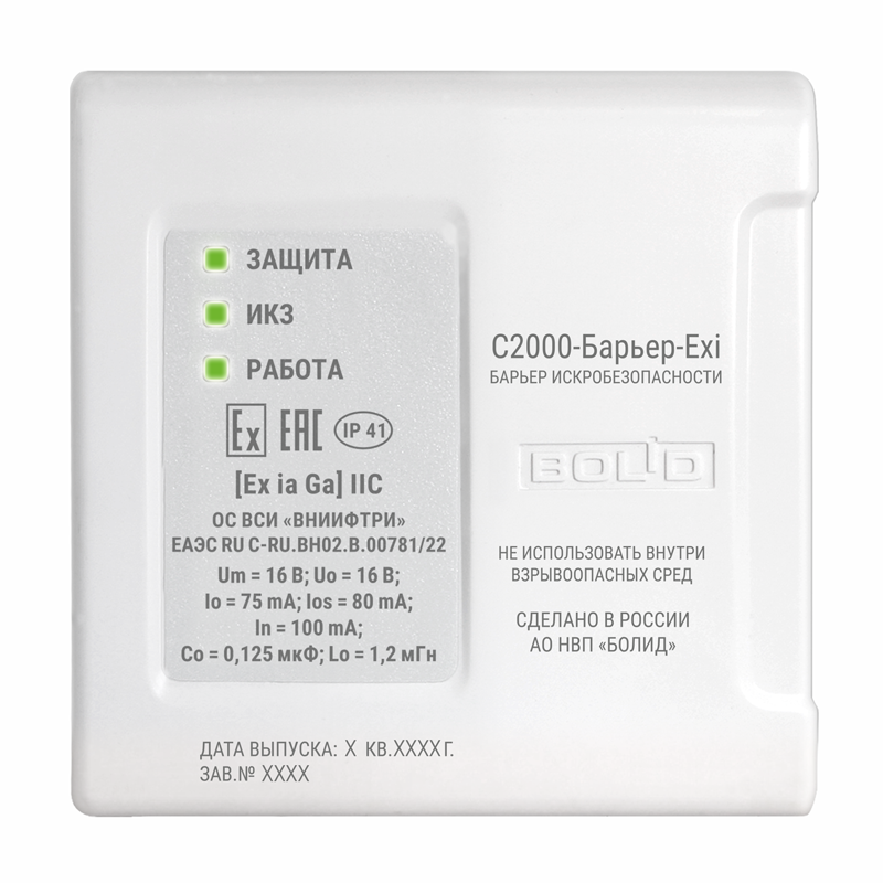 С2000-Барьер-Exi оснащён ИКЗ на входе, во взрывобезопасной зоне и на выходе – в искробезопасной цепи.