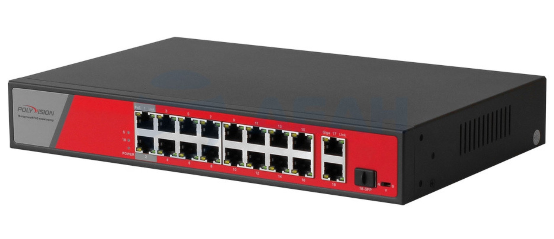 —Polyvision PND-16P-2G1F-BT2 (300W) 18-портовый неуправляемый PoE-коммутатор