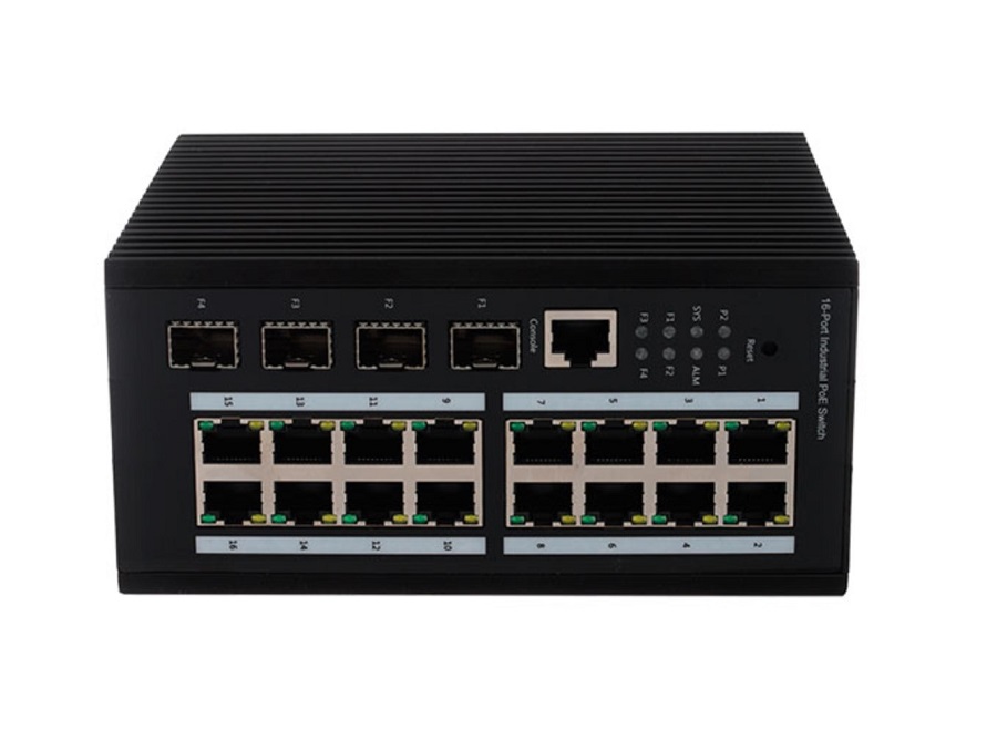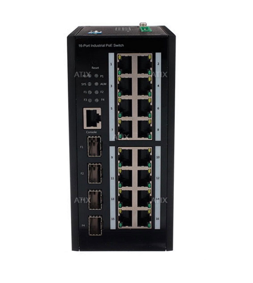 16 портов 10/100/1000Base-T PoE RJ45 , 4 порта 1000Base-X SFP Uplink, 1 порт консольный ; IEEE802.3af, IEEE 802.3at. Количество портов PoE: 16, максимальная мощность PoE на одном порту: 46Вт. Бюджет РoЕ: завистит от БП, до 480Вт (не в комплекте). Режимы работы:AI Loop Prote, AI-POE(watchdog), AI VLAN, AI Extend(CCTV). Расстояние передачи: 0~100м (не вкл. режим AI Extend ), 250м (режим AI Extend с 1 по 16 порты 10Мбит/с). Пропускная способность: 40Гбит/с, Скорость передачи пакетов: 29.8Мбит/с. Релейный выход тревоги. Питание DC48-52В (блок питания приобретается отдельно), 2 входа питания(резервирование). Температурный режим: -45℃~75℃. Габаритные размеры (ДxШxВ) : 164мм 130мм 78.8мм. Din крепление в комплекте. Поддержа удалённого управления через модуль AGM-1