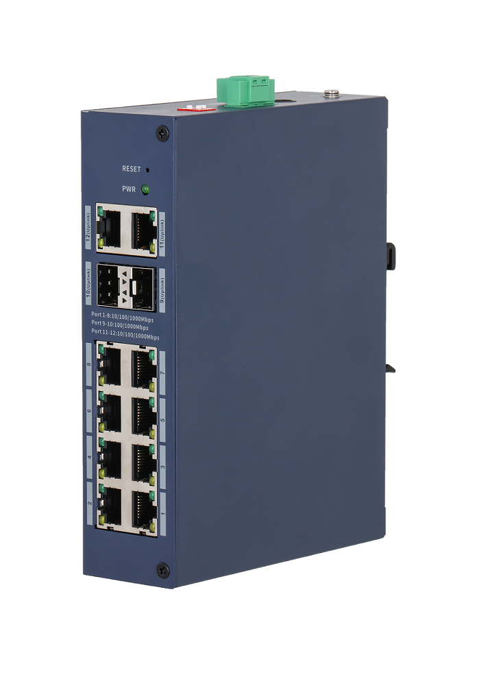 Порты: 8 RJ45 10/100/1000Мбит/с, 2 RJ45 10/100/1000Мбит/с, 2 SFP 1000Мбит/с (uplink); питание: 12В(DC); грозозащита: до 6кВ; рабочая температура: -30°С~+65°С; IP30, IK06; монтаж на DIN-рейку