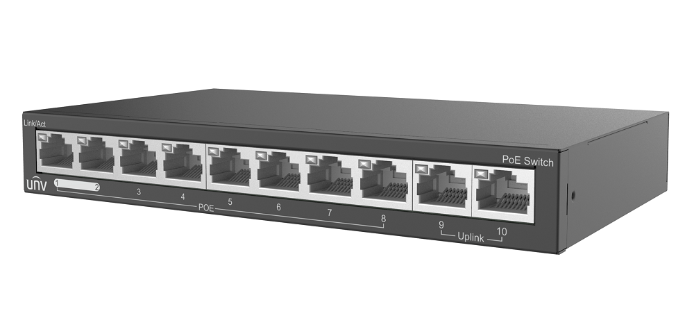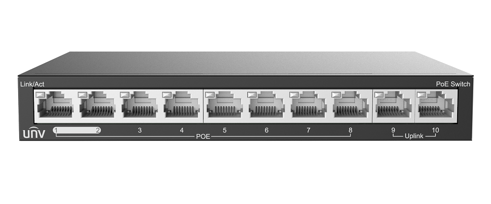 10 сетевых портов×100Mbps (RJ45), включая 8 PoE портов (IEEE802.3, IEEE802.3u, IEEE802.3az, IEEE802.3x, IEEE802.3af, IEEE802.3at), коммутационная способность 2Gbps, скорость пересылки пакетов 1.49Mpps, размер буфера 448Kbit, MAC 1K, общий бюджет мощности 88 Вт, максимальная мощность на порт 30Вт.,  Дальность передачи до 250 м в режиме наблюдения.