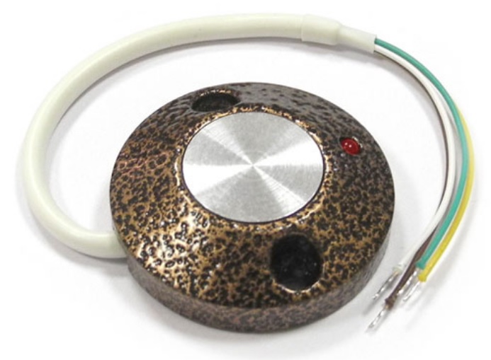 Кнопка выхода накладная, металлическая с индикацией, НО; 38мм (D) х10мм, покраска корпуса порошковой эмалью ; масса брутто: 24,8 г.