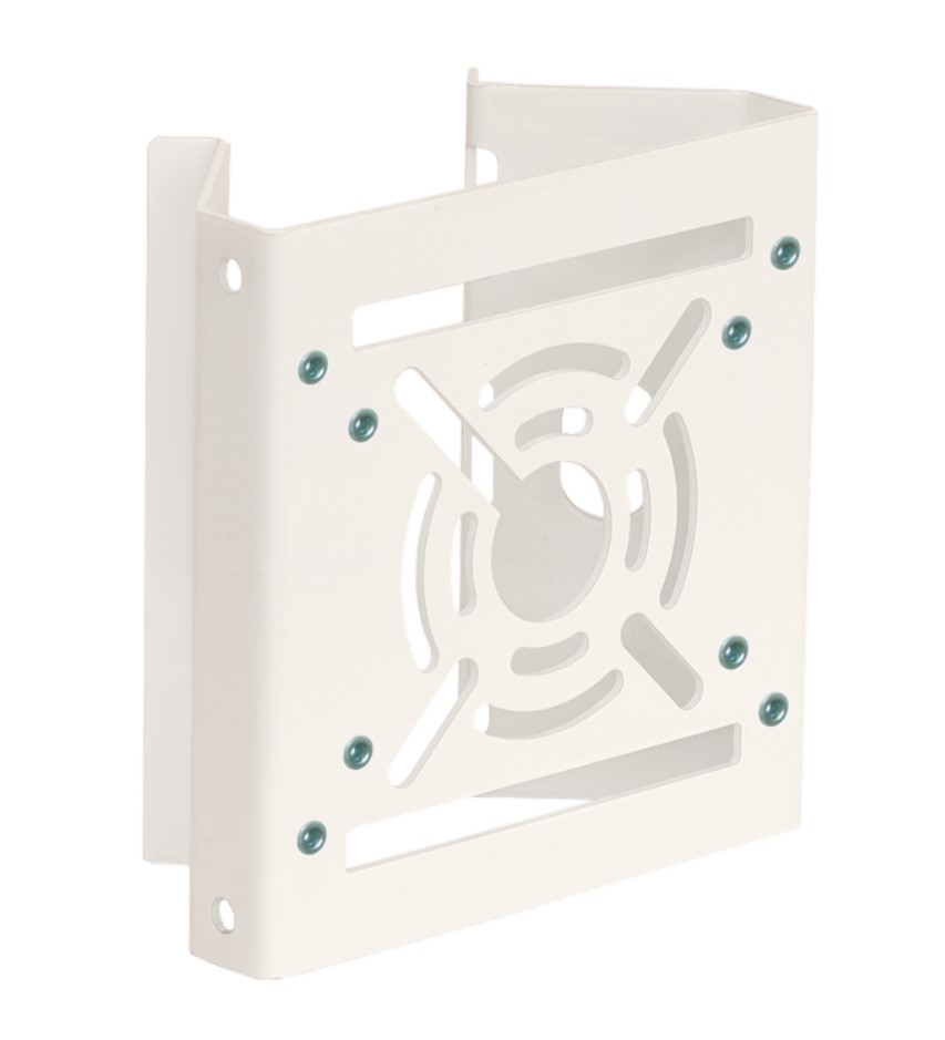Столбовой кронштейн Optimus СК-1 для камер видеонаблюдения, крепление на столбы и опоры, материал: оцинкованная сталь, толщина металла: 2 мм, размеры: 144×138×65 мм, масса: 0,56 кг, нагрузка: до 10 кг, диаметр мачты: от 76 мм, ширина крепежной ленты: до 24 мм, совместимые коробки: JB-100, JB-05, JB-01, PB-01, комплектация: кронштейн, винты М4 (4 шт.), особенности: резьбовые клепки для монтажа коробок PB-01.